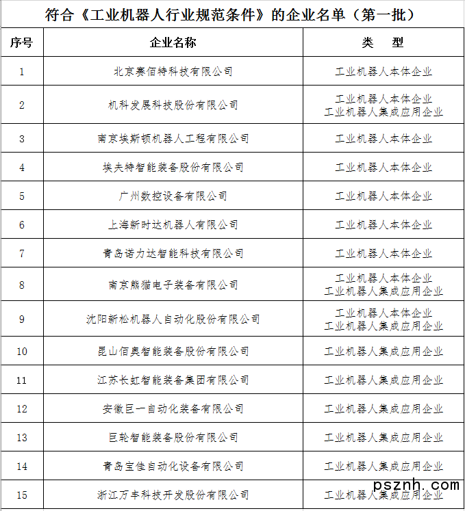 為貫徹落實《機器人產(chǎn)業(yè)發(fā)展規(guī)劃(2016-2020年)》,加強工業(yè)機器人產(chǎn)品質(zhì)量管理,規(guī)范行業(yè)市場秩序,維護用戶合法權(quán)益,保護工業(yè)機器人本體生產(chǎn)企業(yè)和工業(yè)機器人集成應用企業(yè)科技投入的積極性,6月15日,國家工業(yè)和信息化部辦公廳對全國首批符合《工業(yè)機器人行業(yè)規(guī)范條件》的企業(yè)名單進行公示,以下企業(yè)成功入選為全國首批符合《工業(yè)機器人行業(yè)規(guī)范條件》。