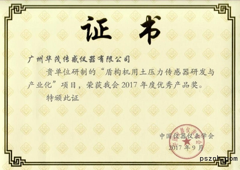 熱烈祝賀廣州華茂的盾構(gòu)機(jī)用土傳感器斬獲2017中國儀器儀表學(xué)會“優(yōu)秀產(chǎn)品獎”