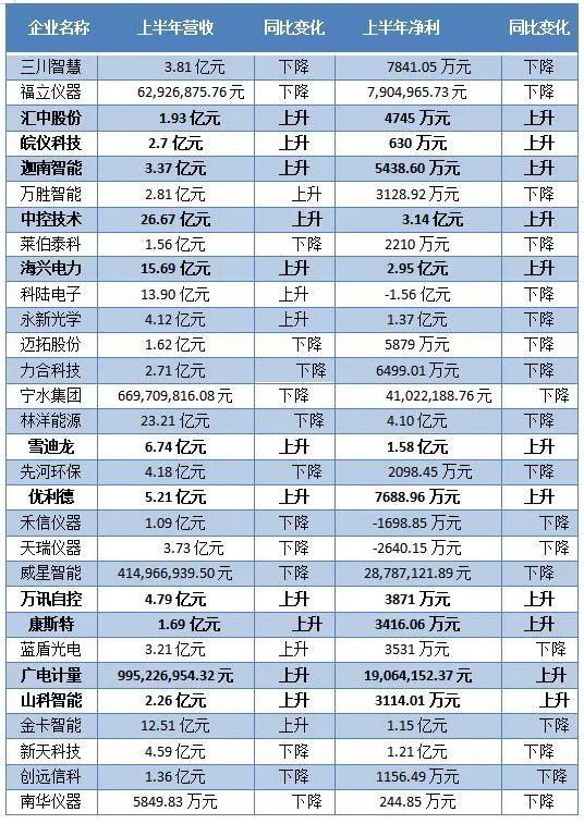 近日,三川智慧、福立儀器、匯中股份、皖儀科技、迦南智能、寧水集團(tuán)、林洋能源、科陸電子等30家儀表企業(yè)發(fā)布了2022年上半年業(yè)績報(bào)告,其中11家實(shí)現(xiàn)營收和凈利潤雙增長,14家營收和凈利潤雙下降,5家增收不增利。