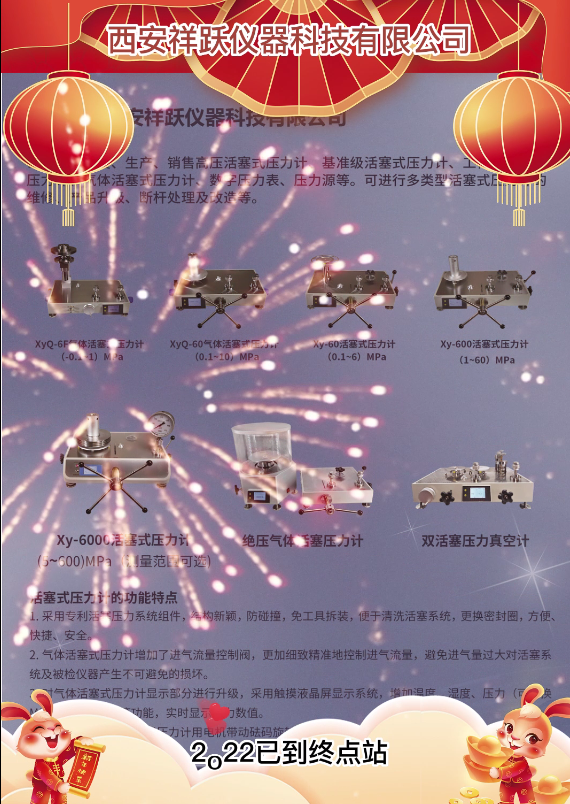 時光像一列快車,呼嘯而過,2022已到終點(diǎn)站?;仡?022年,在疫情大環(huán)境下西安祥躍儀器科技有限公司依然穩(wěn)健前行,碩果累累。公司一直以來專注壓力,服務(wù)計(jì)量,生產(chǎn)的活塞式壓力計(jì)壓力源等各類設(shè)備也得到了越來越多客戶的肯定和支持。
