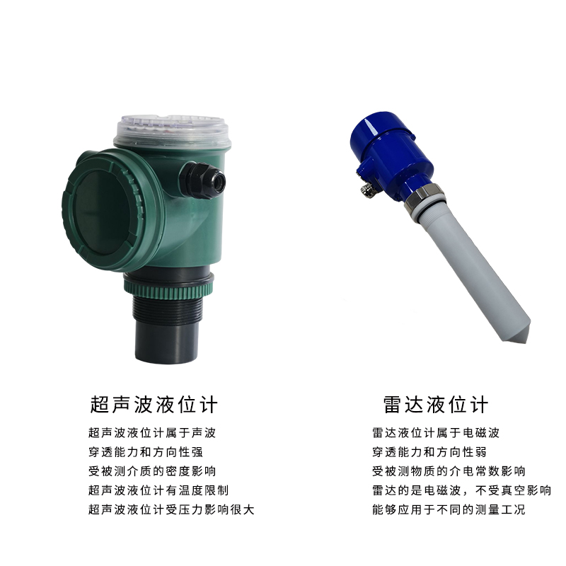 4、使用環(huán)境不同:超聲波液位計有溫度限制,一般探頭處溫度不能超過80度,并且聲波速度受溫度影響很大。超聲波液位計受壓力影響很大,一般要求0.3MPa以內(nèi),因為聲波要靠振動來發(fā)出,壓力太大時發(fā)聲部件會受影響。當(dāng)測量環(huán)境中霧氣或粉塵很大時,超聲波液位計也不能很好的測量。與之相比,雷達的是電磁波,不受真空影響,對介質(zhì)溫度壓力的適用范圍又很寬,隨著高頻雷達的出現(xiàn),其應(yīng)用范圍就更加廣泛了,超聲波液位計則受限較多。