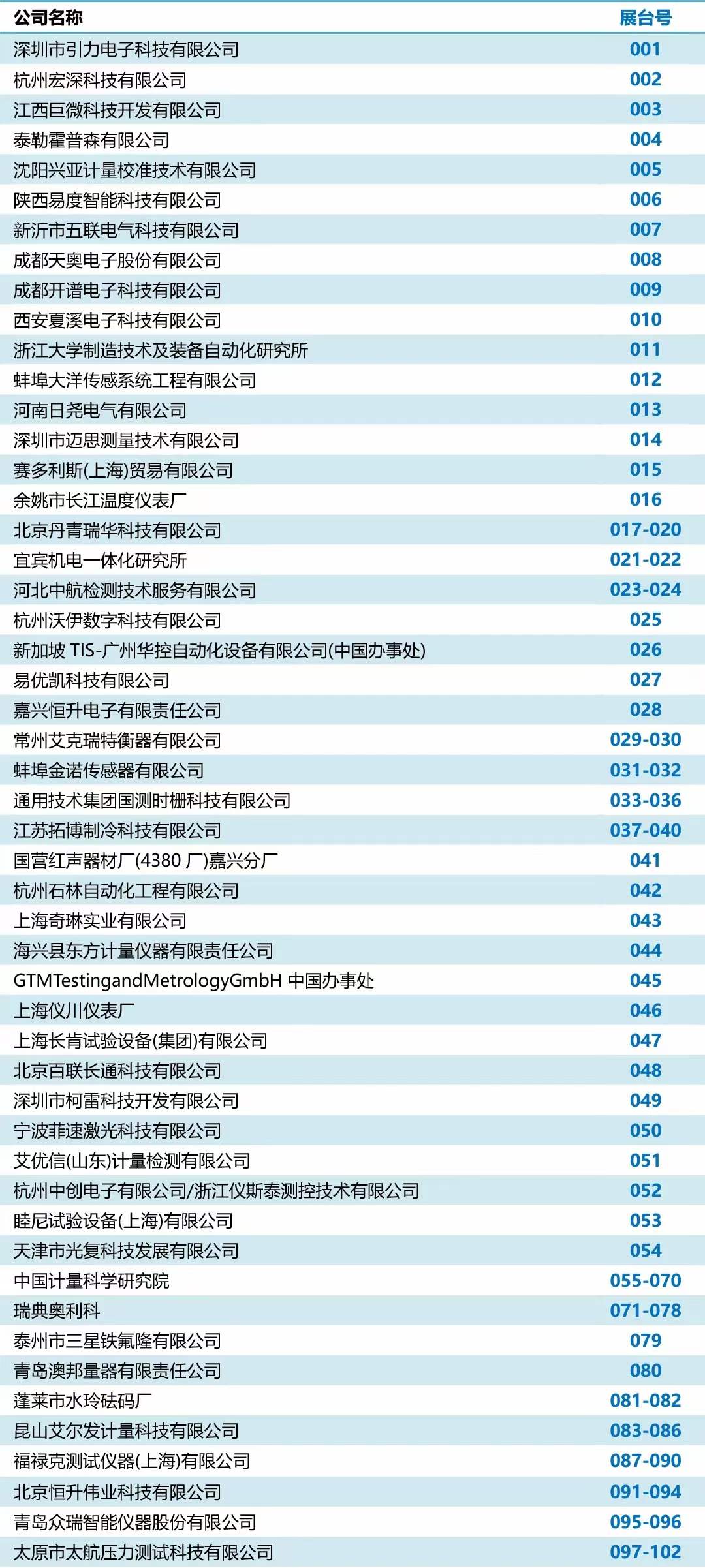 附加上海計量展展商名單: