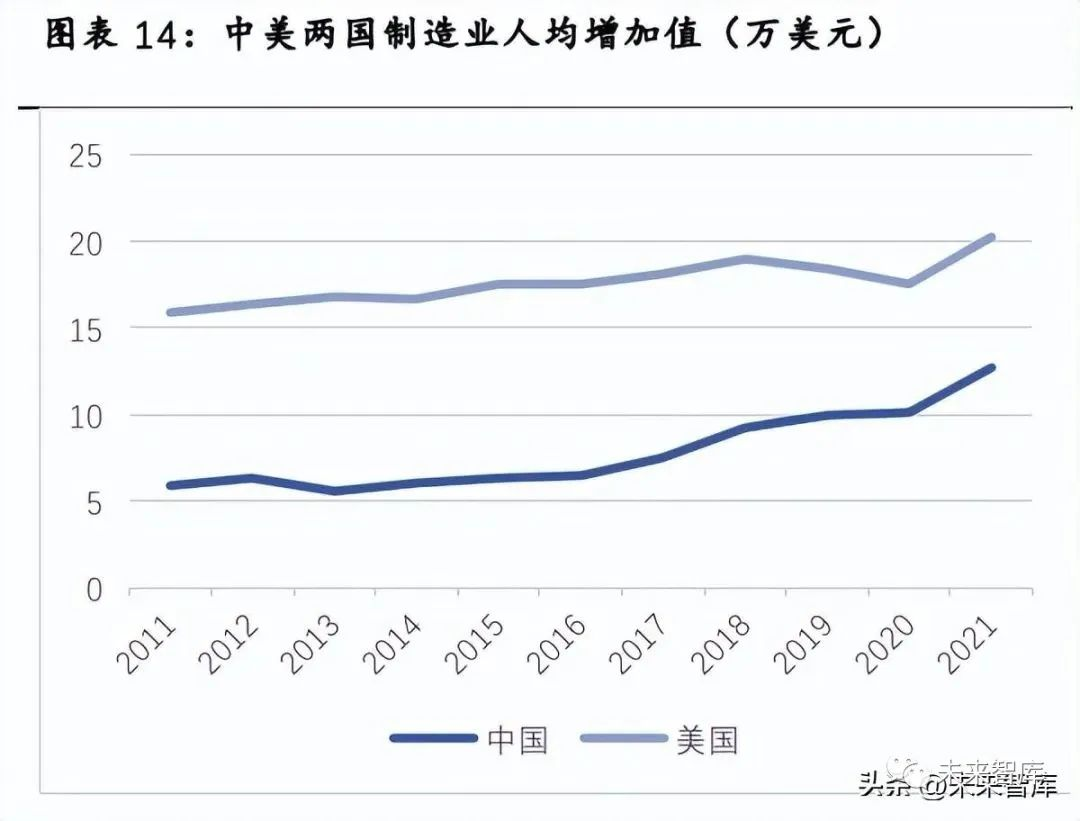 我國(guó)制造業(yè)人均增加值與美國(guó)仍有差距,未來(lái)依然有增長(zhǎng)空間。從數(shù)據(jù)來(lái)看,我國(guó)制造業(yè)人均增加值 2021年為12.7 萬(wàn)美元,而美國(guó)為20.3萬(wàn)美元,制造業(yè)依然有增長(zhǎng)空間。而與此同時(shí),我國(guó)就業(yè)人口受教育程度不斷提高,2021年全國(guó)就業(yè)人口中大學(xué)本科比例超過(guò)10%,大學(xué)就業(yè)人口逐漸成為就業(yè)市場(chǎng)主力,在此其情況下,工程師紅利逐漸顯現(xiàn)。在雙重因素的驅(qū)動(dòng)下,我國(guó)制造業(yè)自動(dòng)化轉(zhuǎn)型鑄就了基礎(chǔ)。此外,考慮疫情影響已經(jīng)逐步消退,制造業(yè)前景有望改善,對(duì)投資自動(dòng)化產(chǎn)線和設(shè)備的需求有望提升,整體自動(dòng)化水平或?qū)⒖焖偬嵘?/span>