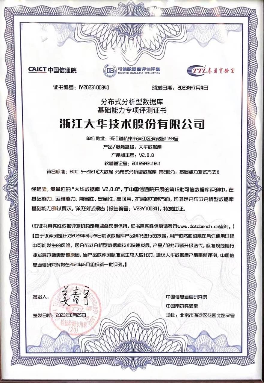 權(quán)威認(rèn)證!大華股份通過中國(guó)信通院“可信數(shù)據(jù)庫(kù)”評(píng)測(cè)
