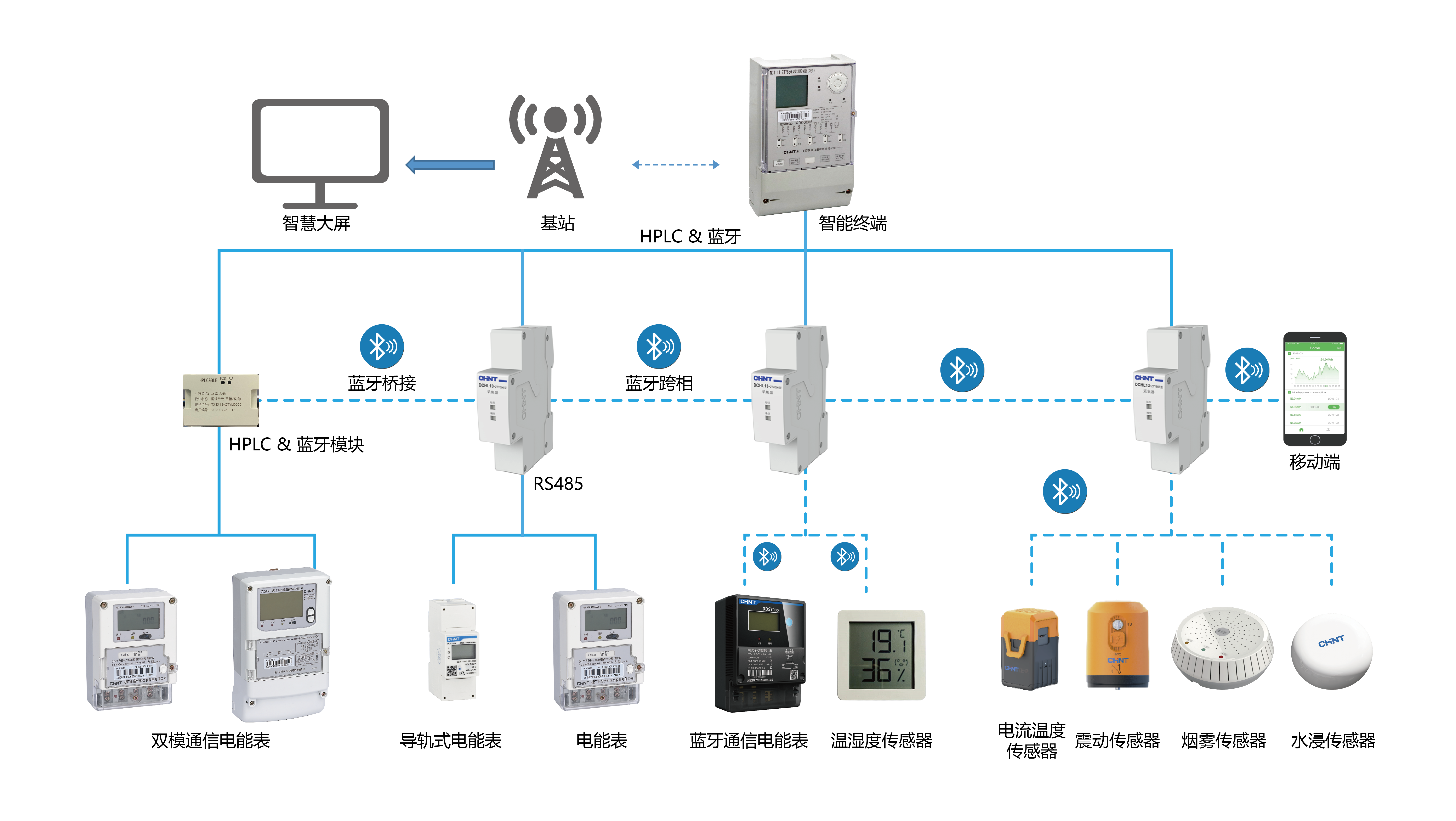 正泰U-NET通信技術融合電力線載波有線通信(HPLC)和藍牙無線通信技術,雙模融合,自動組網(wǎng),傳感器無縫接入。當HPLC無法通信,如電力線斷開時,藍牙實現(xiàn)橋接通信,同時還可通過藍牙實現(xiàn)跨相傳輸,是高速率、高可靠、高性價比局域網(wǎng)數(shù)據(jù)通信建設的優(yōu)選方案。