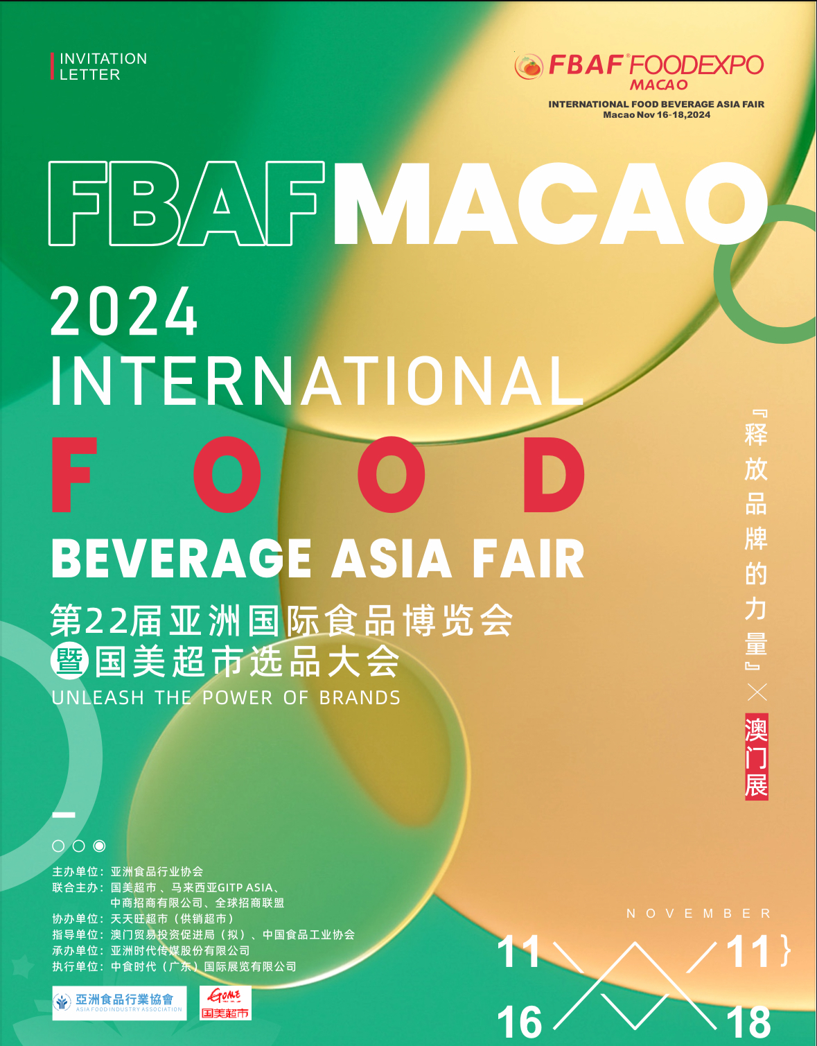 FBAF2024澳門亞洲國際食品博覽會|FFBAF2024澳門食品展|FFBAF2024澳門飲品展|FBAF2024澳門餐飲展|FBAF2024澳門飲料展|FFBAF2024澳門咖啡展|FBAF2024澳門農(nóng)產(chǎn)品展|FBAF2024澳門餐飲設(shè)備展|FBAF2024澳門綜合食品展|FBAF2024澳門休閑食品展|FBAF2024澳門進(jìn)口食品展|FBAF2024澳門高端飲品展|FBAF2024澳門酒水展|FBAF2024澳門海乳制品展|FBAF2024澳門兒童食品展|FBAF2024澳門烘培展|FBAF2024澳門高端食品展|FBAF2024澳門食材展|FBAF2024澳門健康食品展|FBAF2024澳門預(yù)制菜展|FBAF2024澳門食品機(jī)械展|FBAF2024澳門機(jī)械包裝展|FBAF2024澳門糖果零食展|FBAF2024澳門食品產(chǎn)業(yè)展|FBAF2024澳門餐飲器皿展|FBAF2024亞洲餐飲展|FBAF2024澳門包裝展|FBAF2024澳門食品包裝展|FBAF2024澳門糧油調(diào)味品展