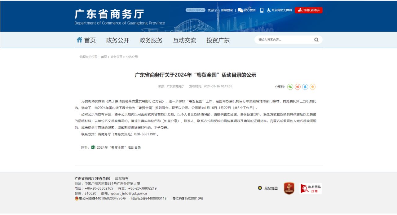 廣東省商務(wù)廳關(guān)于2024年“粵貿(mào)全國”活動目錄的公示