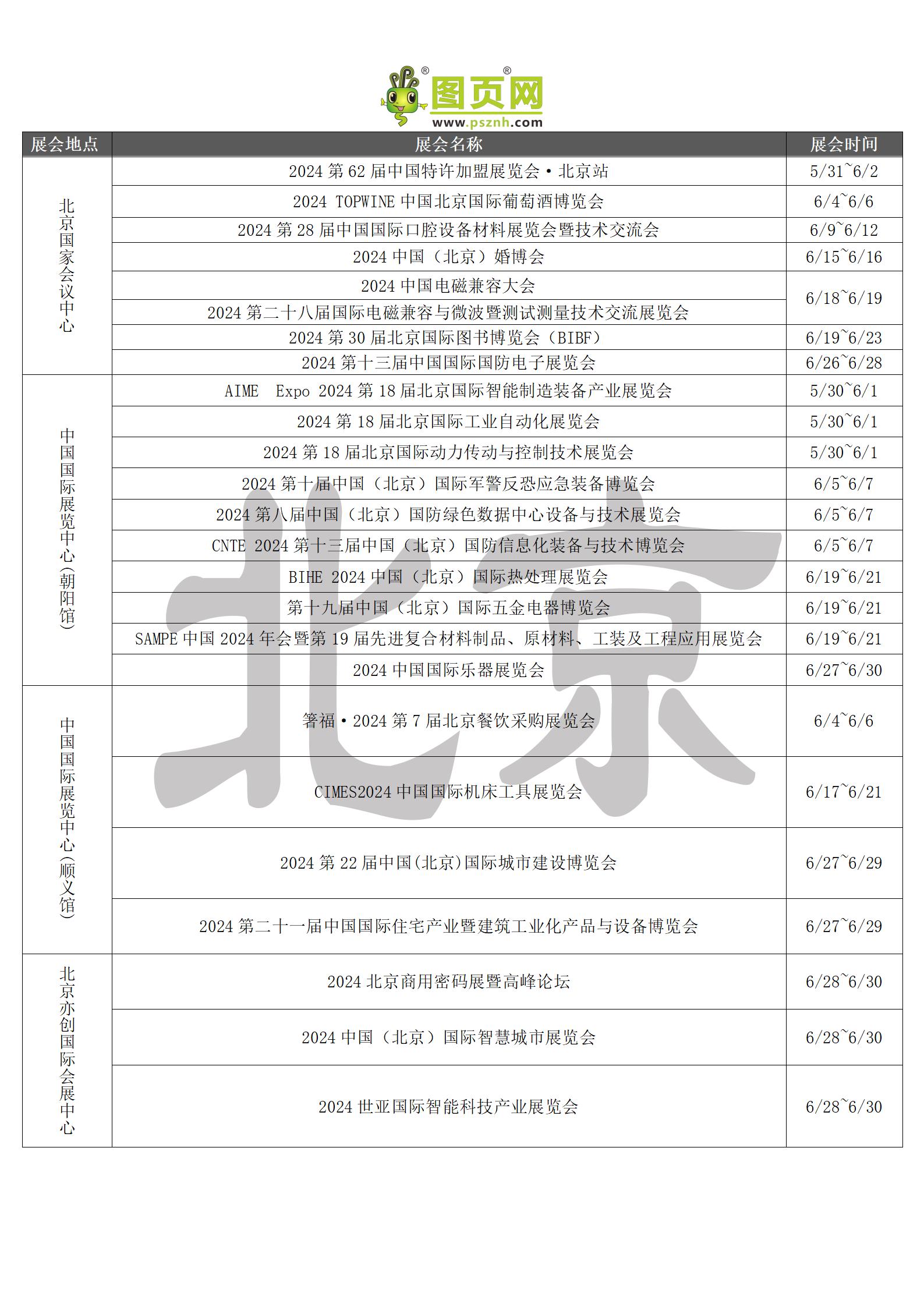 2024年6月全國(guó)展會(huì)排期表 詳盡齊全 展會(huì)超300+