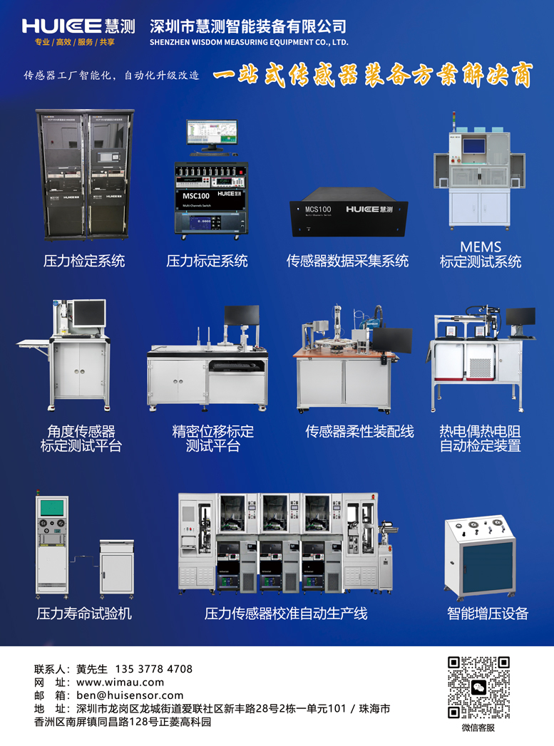 本期雜志特別推介了深圳市慧測智能裝備有限公司,作為本期雜志的專業(yè)合作伙伴,慧測智能裝備有限公司致力于傳感器產(chǎn)業(yè)裝備的研發(fā)、生產(chǎn)及銷售,提升傳感器產(chǎn)業(yè)的自動化和智能化,助力客戶提高生產(chǎn)效率和質(zhì)量。公司已研發(fā)出多款測試平臺和設備,服務涵蓋PCBA燒錄及功能測試、壓力傳感器標定測試、位移傳感器標定測試、液位傳感器標定測試等多個領(lǐng)域?;蹨y智能裝備有限公司秉承“為合作伙伴創(chuàng)造價值”的核心價值觀,以誠信、寬容、創(chuàng)新、服務為企業(yè)精神,通過自主創(chuàng)新和真誠合作為電子商務及信息服務行業(yè)創(chuàng)造價值。