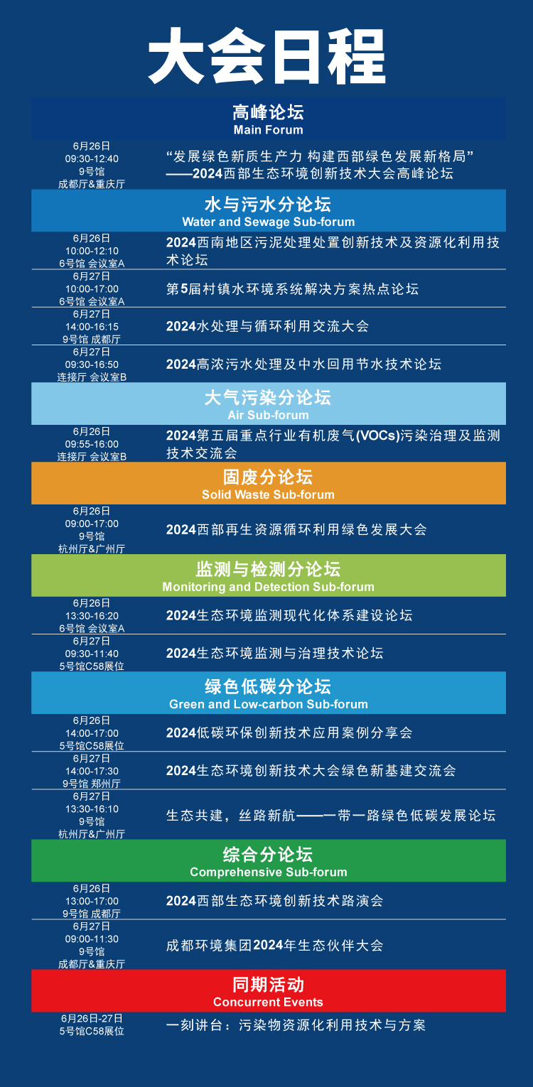 高峰論壇以及各領(lǐng)域分論壇詳細(xì)議程可點(diǎn)擊(6月26-28日,2024生態(tài)環(huán)境創(chuàng)新技術(shù)大會(huì)邀您“蓉城”相見 )查看!