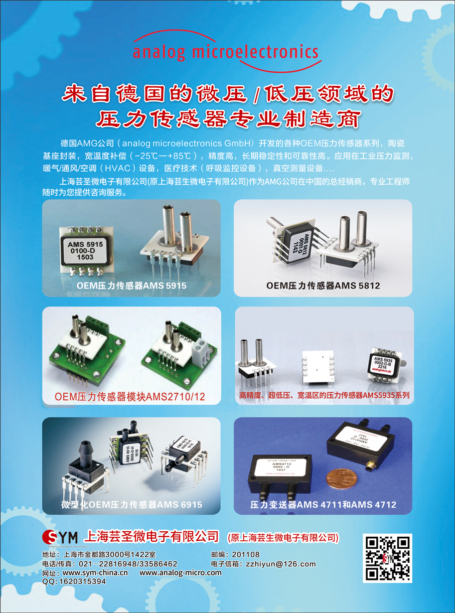 上海蕓圣微電子有限公司是由德國analog microelectronics GmbH(AMG公司)總經(jīng)理豪赫博士幫助支持下,由施林生先生于1999年創(chuàng)建于上海。公司專業(yè)銷售德國AMG公司開發(fā)生產(chǎn)的各類工業(yè)用傳感器信號處理標(biāo)準(zhǔn)集成電路和各種OEM壓力傳感器,并負(fù)責(zé)相關(guān)產(chǎn)品的技術(shù)咨詢,幫助國內(nèi)用戶更好地使用AMG公司的產(chǎn)品。經(jīng)過十幾年的共同努力和AMG公司德國制造的產(chǎn)品的良好性能和聲譽(yù),上海蕓圣微電子有限公司銷售的產(chǎn)品已經(jīng)幾乎覆蓋全國各個(gè)省市,極大地滿足了國內(nèi)各類用戶的要求,并得到了大多數(shù)用戶的贊譽(yù)。