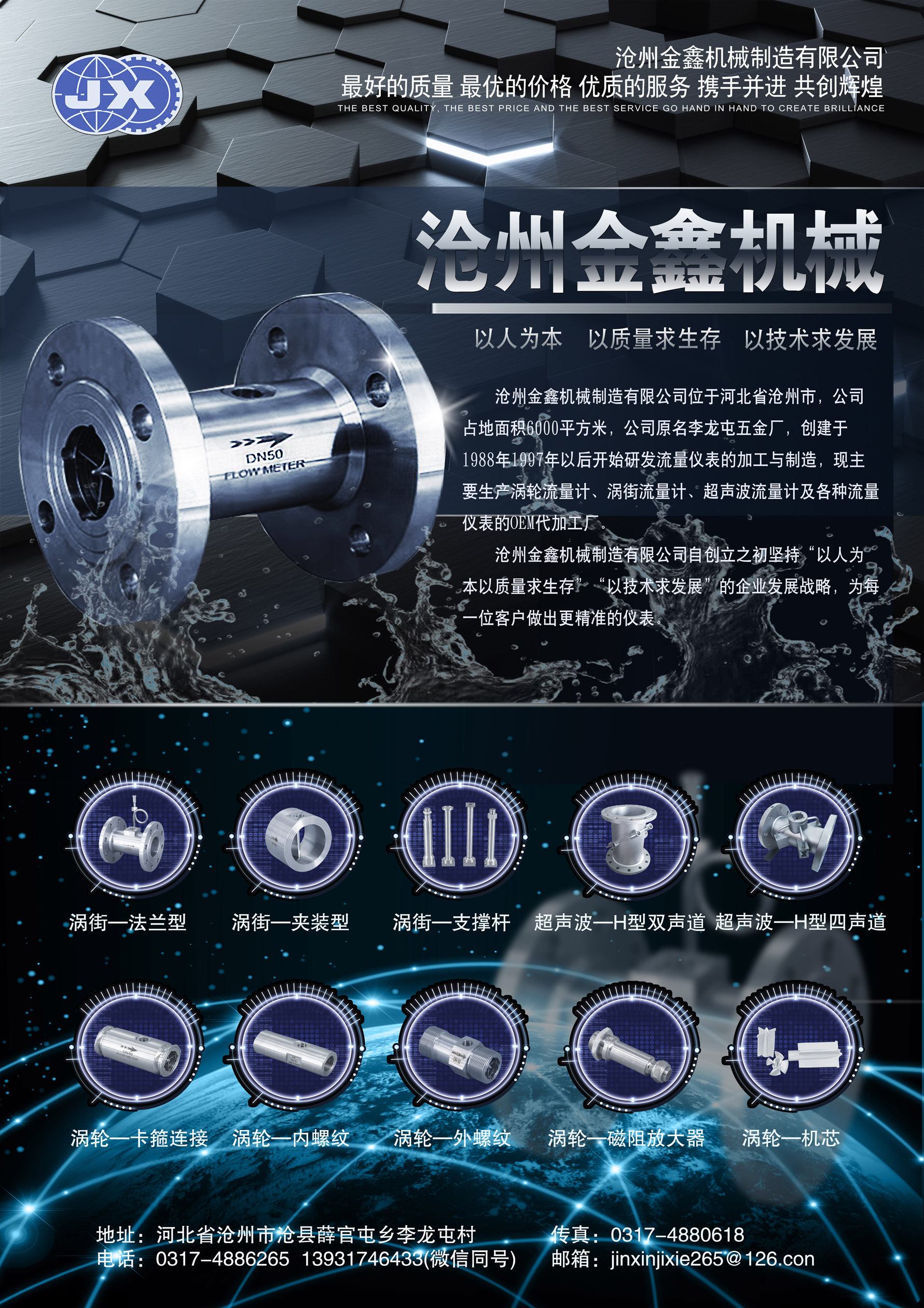 滄州金鑫機械制造有限公司在流量計領(lǐng)域不斷創(chuàng)新,追求卓越。公司秉承“質(zhì)量第一,客戶至上”的經(jīng)營理念,嚴(yán)格控制每一個生產(chǎn)環(huán)節(jié),確保產(chǎn)品的高質(zhì)量和高精度。憑借其專業(yè)的技術(shù)和豐富的經(jīng)驗,滄州金鑫機械制造有限公司不斷提升自身競爭力,逐步在行業(yè)內(nèi)樹立了良好的品牌形象。