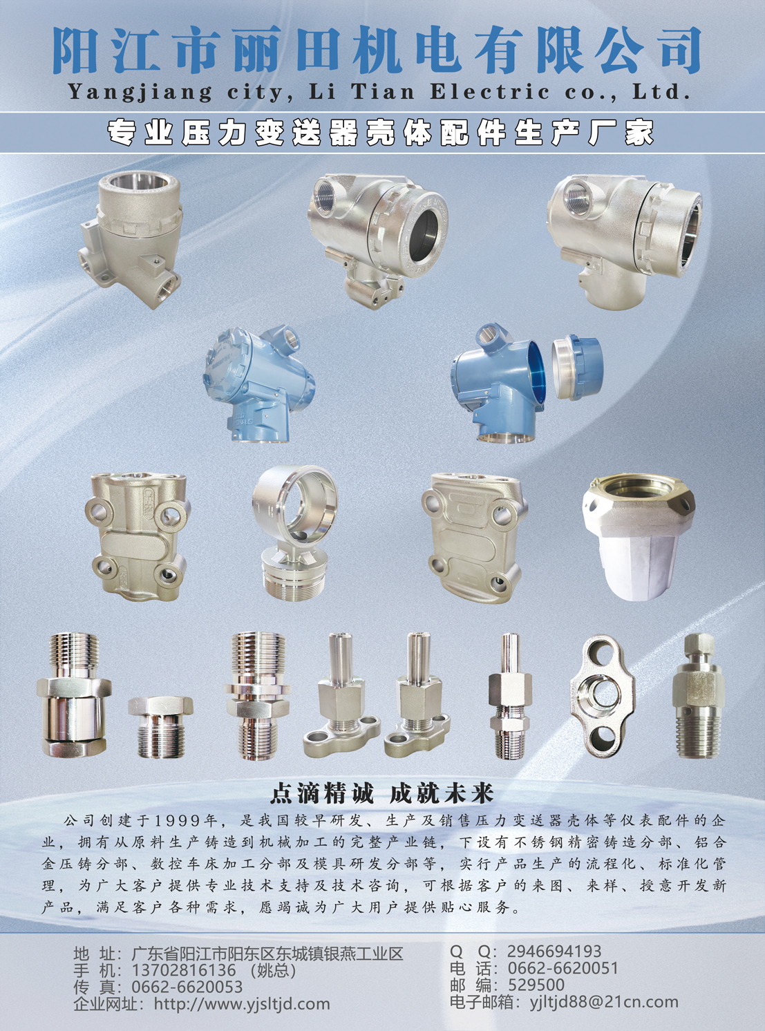 我們非常榮幸地宣布,陽江市麗田機(jī)電有限公司(以下簡(jiǎn)稱“麗田機(jī)電”)正式入駐《儀表與測(cè)量控制》雜志。成立于1999年的麗田機(jī)電,是我國(guó)較早從事壓力變送器殼體配件研發(fā)、生產(chǎn)及銷售的企業(yè)。公司憑借其在機(jī)械加工和精密鑄造領(lǐng)域的深厚積累,逐步成長(zhǎng)為行業(yè)內(nèi)的領(lǐng)跑者。麗田機(jī)電擁有從原料生產(chǎn)、鑄造到機(jī)械加工的完整產(chǎn)業(yè)鏈,包括不銹鋼精密鑄造、鋁合金壓鑄、數(shù)控車床加工以及模具研發(fā)等多個(gè)分部。公司現(xiàn)有員工近200人,其中工程師、技師為技術(shù)骨干,具有成熟的技術(shù)隊(duì)伍和完善的生產(chǎn)管理體系。