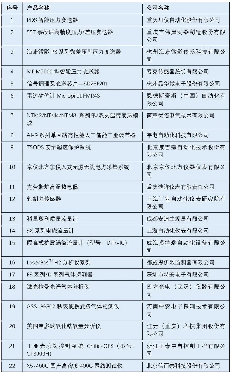 “十佳新品”涵蓋變送器、溫度計(jì)、閥門、執(zhí)行器、物位計(jì)、壓力計(jì)、流量計(jì)、分析檢測(cè)儀器、系統(tǒng)、信息物聯(lián)、綜合類等11類產(chǎn)品,均是具有自主知識(shí)產(chǎn)權(quán)、在本年度發(fā)布的、已有產(chǎn)品迭代升級(jí)款或新開發(fā)產(chǎn)品。