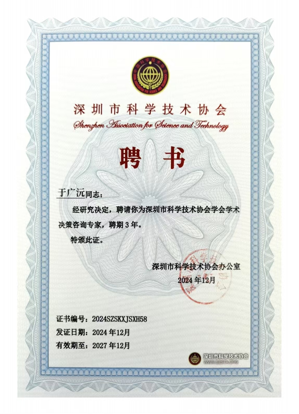 順源科技總經(jīng)理于廣沅受聘深圳市科協(xié)學(xué)術(shù)決策咨詢專家,助力科技創(chuàng)新發(fā)展