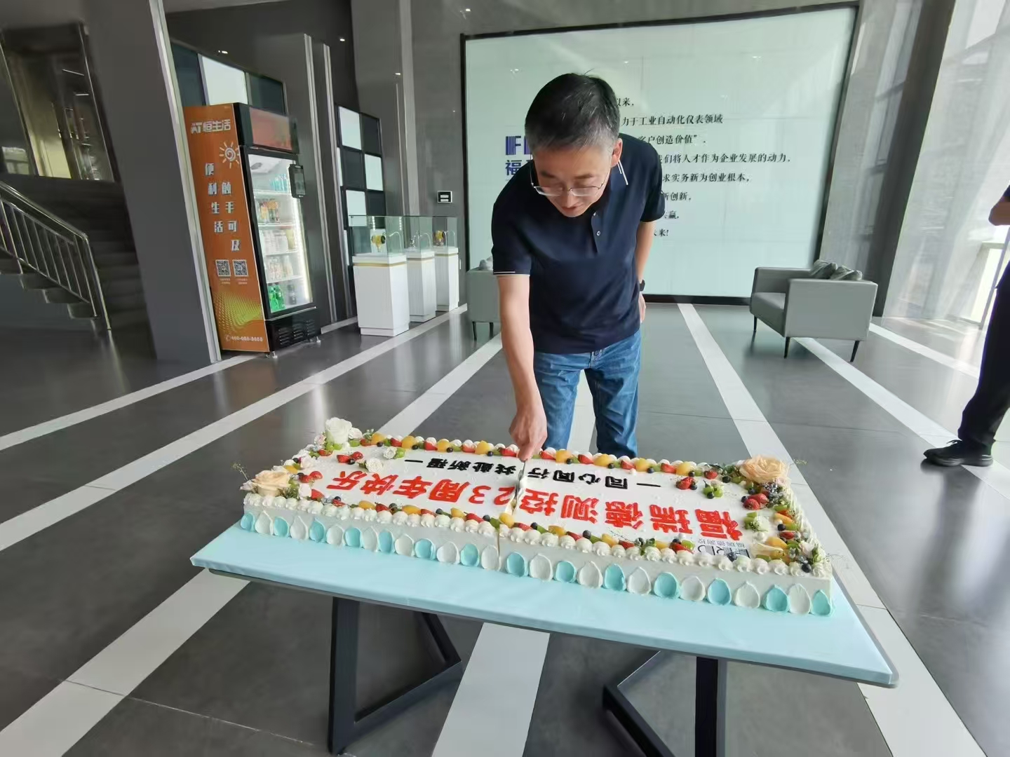 在近百名員工及合作伙伴見(jiàn)證下,李明手握特制"23"造型切刀完成儀式。"這塊蛋糕是福瑞德人用7項(xiàng)國(guó)家標(biāo)準(zhǔn)、48項(xiàng)專利'烘焙'出的成果!"他在致辭中舉起傳感器芯片模型,動(dòng)情回顧發(fā)展歷程: