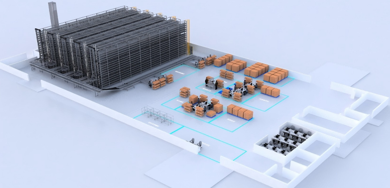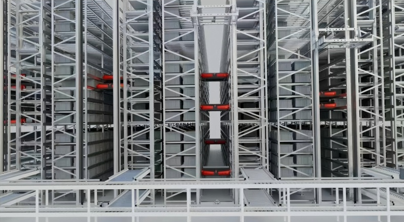 本次系統(tǒng)升級項目采用“立庫貨架+料箱穿梭車+提升機+自動化輸送線”四位一體設(shè)計,輔以 AGV 無人搬運與 WMS 倉儲管理系統(tǒng)聯(lián)動運行,構(gòu)建起覆蓋入庫、揀選、出庫、配送全流程的一體化自動化體系。