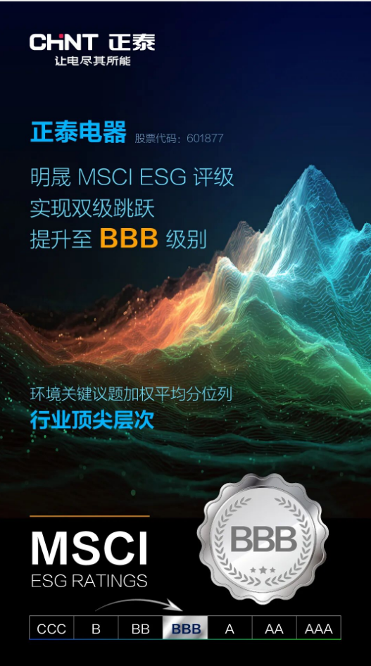 MSCI評級最新出爐:正泰電器躍升兩級至BBB級!