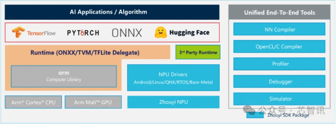 ●全面的系統(tǒng)與異構(gòu)兼容:支持Android、Linux、RTOS、QNX等多種操作系統(tǒng),并通過(guò)TVM/ONNX實(shí)現(xiàn)SoC異構(gòu)計(jì)算,高效調(diào)度CPU、GPU、NPU等計(jì)算資源。
