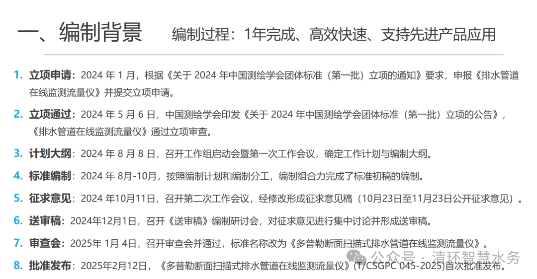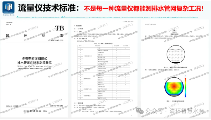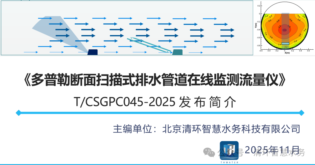 為了提高排水管道流量測(cè)量的一致性和準(zhǔn)確性,為排水管網(wǎng)定量診斷提供可靠依據(jù),清環(huán)公司牽頭編制了產(chǎn)品標(biāo)準(zhǔn)《多普勒斷面掃描式排水管道在線監(jiān)測(cè)流量?jī)x》,參見:清環(huán)主編的《多普勒斷面掃描式排水管道在線監(jiān)測(cè)流量?jī)x》T/CSGPC045-2025發(fā)布。多普勒斷面掃描式排水管道在線監(jiān)測(cè)流量?jī)x的流速測(cè)量應(yīng)使用超聲波多普勒原理,采用連續(xù)波和脈沖波結(jié)合的斷面掃描方式,實(shí)現(xiàn)傳感器前端至水面區(qū)域內(nèi)流速特征的全面掃描與信號(hào)處理,獲取流速分布數(shù)據(jù),建立上述數(shù)據(jù)與流場(chǎng)的匹配關(guān)系,計(jì)算監(jiān)測(cè)斷面的平均流速,提高流速測(cè)量的代表性和可靠性;通過(guò)液位和平均流速使用面積速度法計(jì)算流量,實(shí)現(xiàn)液位、平均流速、流量的同步測(cè)量。【參考排水管網(wǎng)流量監(jiān)測(cè)核心技術(shù)之全斷面掃描法;排水管道流量?jī)x高中低檔如何選—智慧排水之亂彈(129)
