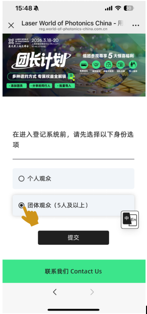 Step 3  選擇團(tuán)體觀眾注冊(cè)