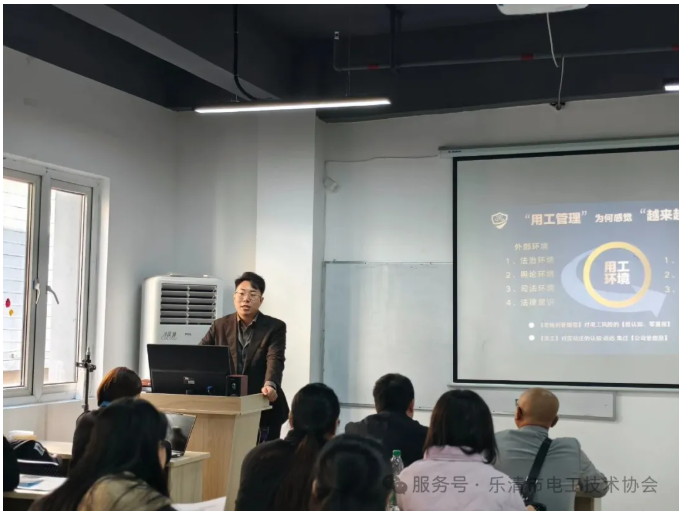 11月30日下午,樂清市學信教育教室一內(nèi),一場以“破解企業(yè)用工難題”為主題的公益培訓暖心開啟,如光照亮行業(yè)前行路。這場由樂清市電工技術(shù)協(xié)會精心籌備的學術(shù)盛宴,誠意與智慧滿溢,吸引30余位協(xié)會同仁奔赴而來。在盧其亮會長引領(lǐng)下,眾人懷揣提升企業(yè)用工管理水平之愿,齊聚共探合規(guī)用工密碼。