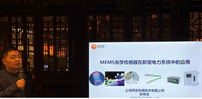 上海拜安傳感技術(shù)有限公司智能事業(yè)部李偉偉展示了《MEMS 光學(xué)傳感器在新型電力系統(tǒng)中的應(yīng)用》。MEMS 光學(xué)傳感器憑借小型化、低功耗、高集成度的優(yōu)勢(shì),已在特高壓輸變電設(shè)備絕緣監(jiān)測(cè)、新能源發(fā)電功率預(yù)測(cè)、儲(chǔ)能電站氣體監(jiān)測(cè)等場(chǎng)景實(shí)現(xiàn)規(guī)模化應(yīng)用,成為新型電力系統(tǒng)傳感技術(shù)升級(jí)的重要方向。