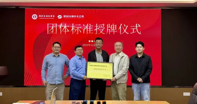隨后,學(xué)會(huì)常務(wù)副會(huì)長李云峰、副秘書長江嘉楷等一行赴深圳市光明區(qū)環(huán)境水務(wù)有限公司開展學(xué)會(huì)標(biāo)準(zhǔn)化工作委員會(huì)委員單位授牌儀式。深圳市光明區(qū)環(huán)境水務(wù)有限公司的葉經(jīng)理、郭部長、曹工等相關(guān)領(lǐng)域?qū)<?/span>對學(xué)會(huì)一行表示熱烈歡迎,并在現(xiàn)場交流中表達(dá)了對后續(xù)團(tuán)體標(biāo)準(zhǔn)工作的支持,同時(shí)也對雙方協(xié)同推動(dòng)行業(yè)標(biāo)準(zhǔn)化發(fā)展的前景寄予了積極期待。