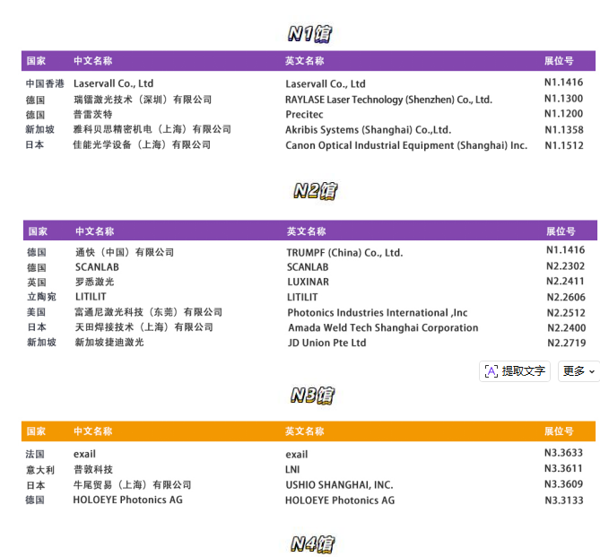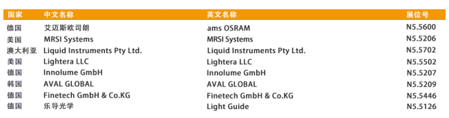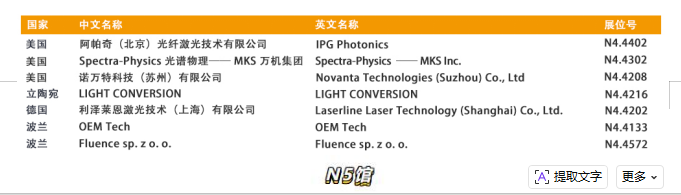 僅羅列部分,更多展商及展品請至慕尼黑上海光博會在線會刊
