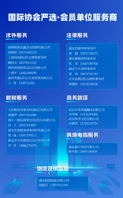 參加活動(dòng)的企業(yè)還有:副會(huì)長(zhǎng)單位大信稅務(wù)師事務(wù)所(湖北)有限公司總經(jīng)理王慶華、上海段和段(武漢)律師事務(wù)所易倩;理事單位兩儀跨境投資(武漢)有限公司項(xiàng)目經(jīng)理洪龕、武漢沃隆通信技術(shù)有限公司CEO律國(guó)軍;會(huì)員單位湖北數(shù)智軍科技有限公司總經(jīng)理袁智、湖北瀚宇國(guó)際物流服務(wù)有限公司武漢分公司負(fù)責(zé)人袁徐恩、武漢咻唰外貿(mào)服務(wù)有限公司銷(xiāo)售總監(jiān)翟英健、隨州市星瑞礦業(yè)有限公司葉星辰;鼎潤(rùn)咨詢(xún)合伙人陳優(yōu)麗。