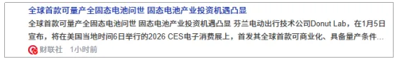 在2026 CES電子消費展上,首發(fā)其全球首款可商業(yè)化、具備量產(chǎn)條件的全固態(tài)電池,并強調“現(xiàn)已可投入生產(chǎn)”。