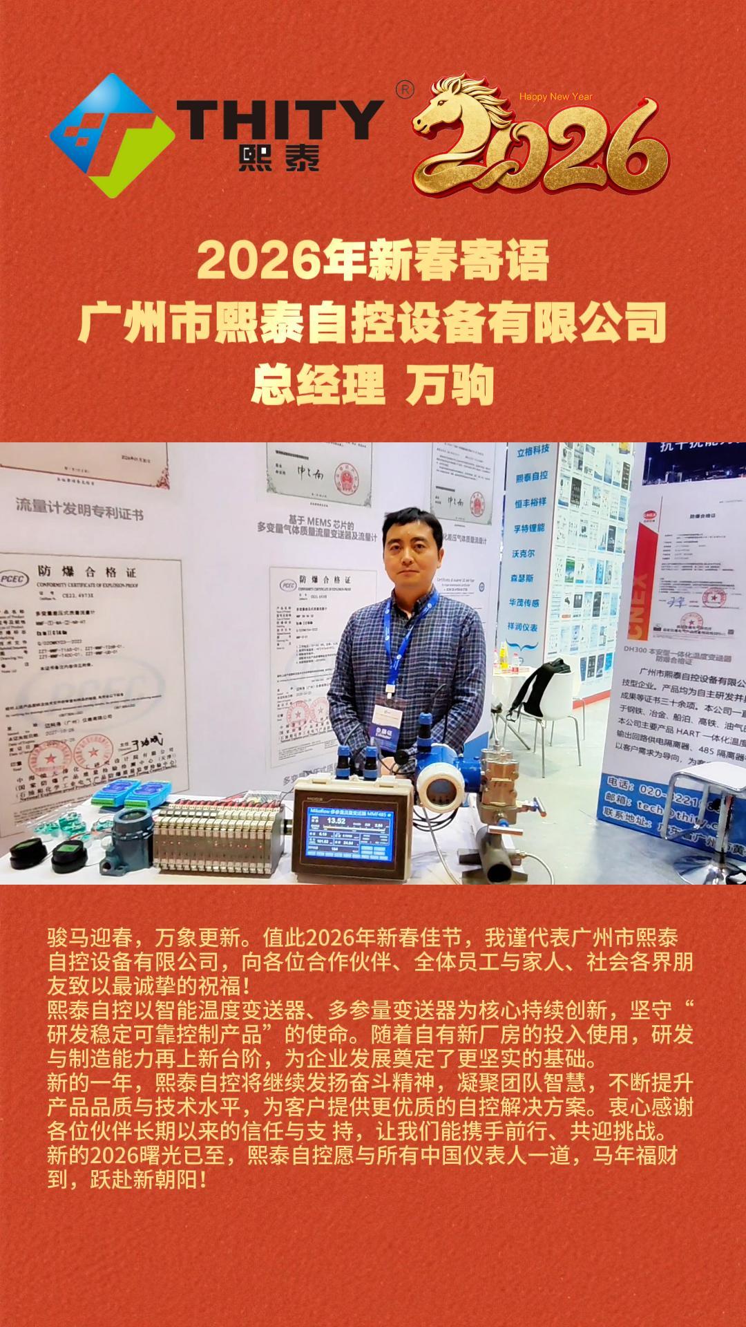廣州市熙泰自控設(shè)備有限公司 總經(jīng)理 萬駒2026年新春寄語