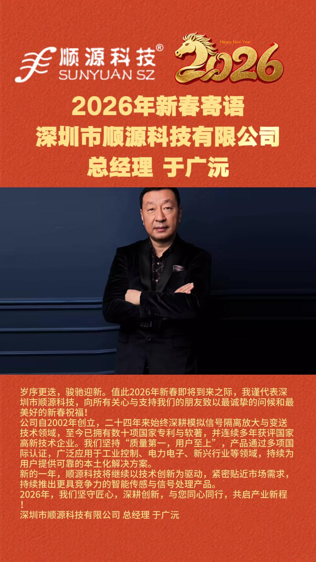 歲序更迭,駿馳迎新。值此2026年新春即將到來之際我謹代表深圳市順源科技,向所有關心與支持我們的朋友致以最誠摯的問候和最美好的新春祝福!