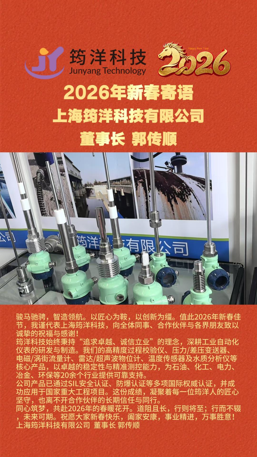 駿馬馳騁,智造領(lǐng)航。以匠心為鞍,以創(chuàng)新為韁。值此2026年新春佳節(jié),我謹代表上海筠洋科技,向全體同事、合作伙伴與各界朋友致以誠摯的祝福與感謝!
