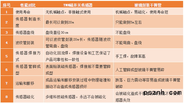 TMR磁開關(guān)傳感器與干簧管比較