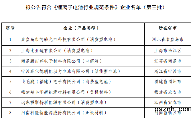 附件:擬公告符合《鋰離子電池行業(yè)規(guī)范條件》企業(yè)名單(第三批)