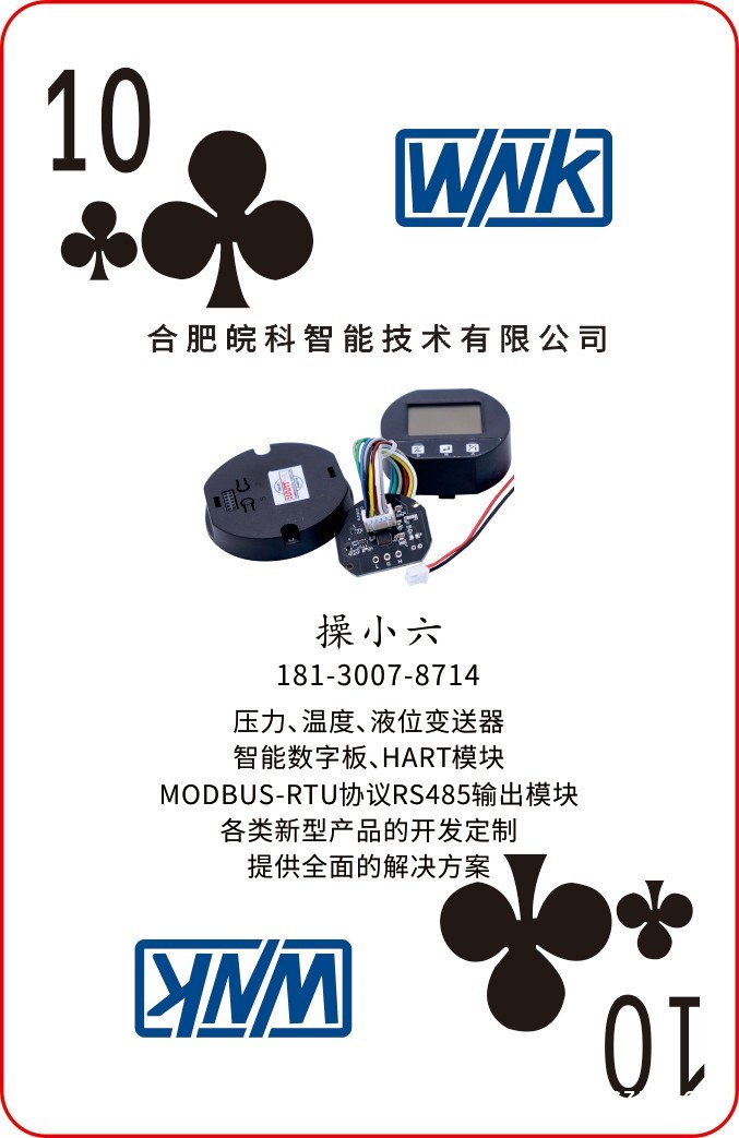 《2020圖頁儀表行業(yè)撲克牌》推出就得到  合肥皖科智能技術(shù)有限公司市場部經(jīng)理操小六經(jīng)理的認(rèn)同和支持,操經(jīng)理的 合肥皖科智能積極認(rèn)領(lǐng)了方塊10做為此次的公司的專屬牌!