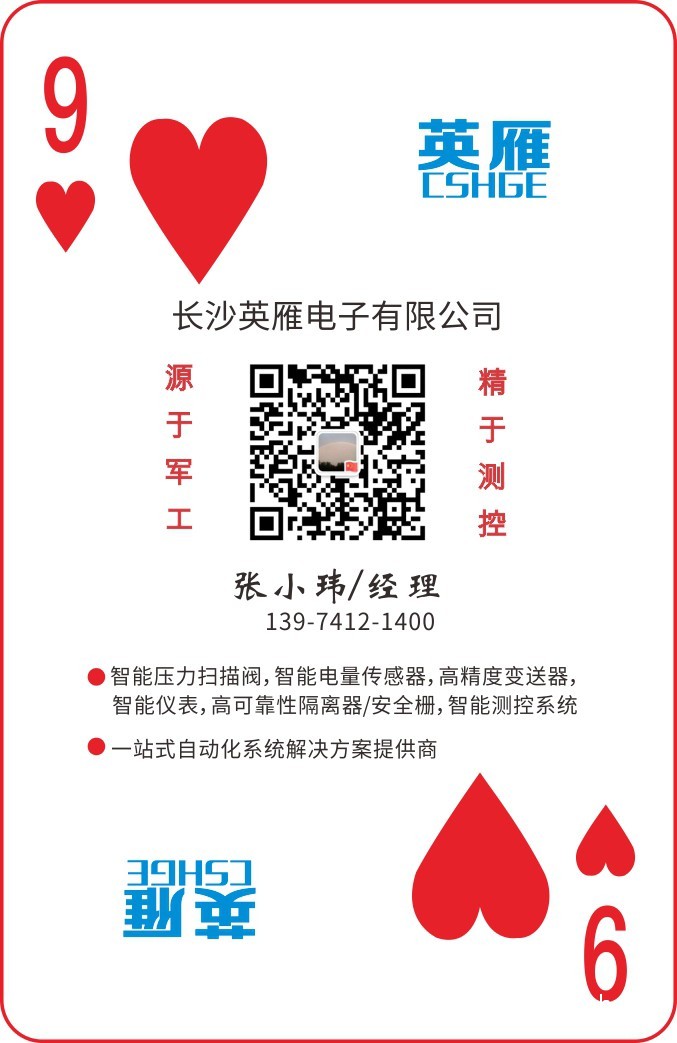 《2020圖頁儀表行業(yè)撲克牌》推出就得到 長沙英雁電子有限公司總經(jīng)理張小瑋的認(rèn)同和支持,英雁電子積極認(rèn)領(lǐng)了紅桃9做為此次的公司的專屬牌!