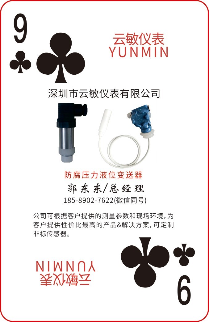 《2020圖頁(yè)儀表行業(yè)撲克牌》推出就得到深圳市云敏儀表有限公司總經(jīng)理郭東東的認(rèn)同和支持,郭總云敏儀表積極認(rèn)領(lǐng)了梅花9做為此次的公司的專屬牌!