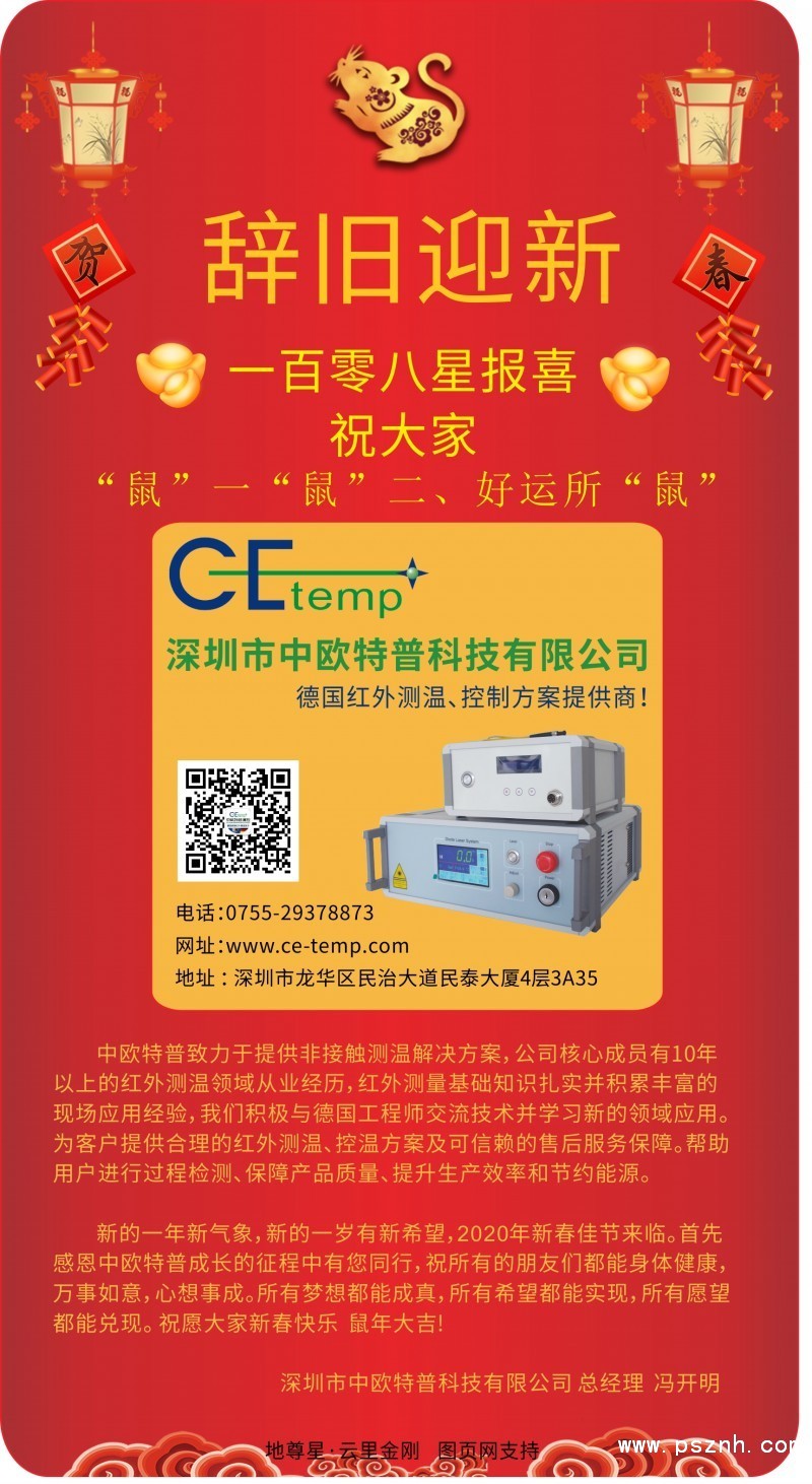 新的一年新氣象,新的一歲有新希望,2020年新春佳節(jié)來臨。首先感恩中歐特普成長的征程中有您同行,祝所有的朋友們都能身體健康,萬事如意,心想事成。所有夢想都能成真,所有希望都能實(shí)現(xiàn),所有愿望都能兌現(xiàn)。 祝愿大家新春快樂  鼠年大吉!