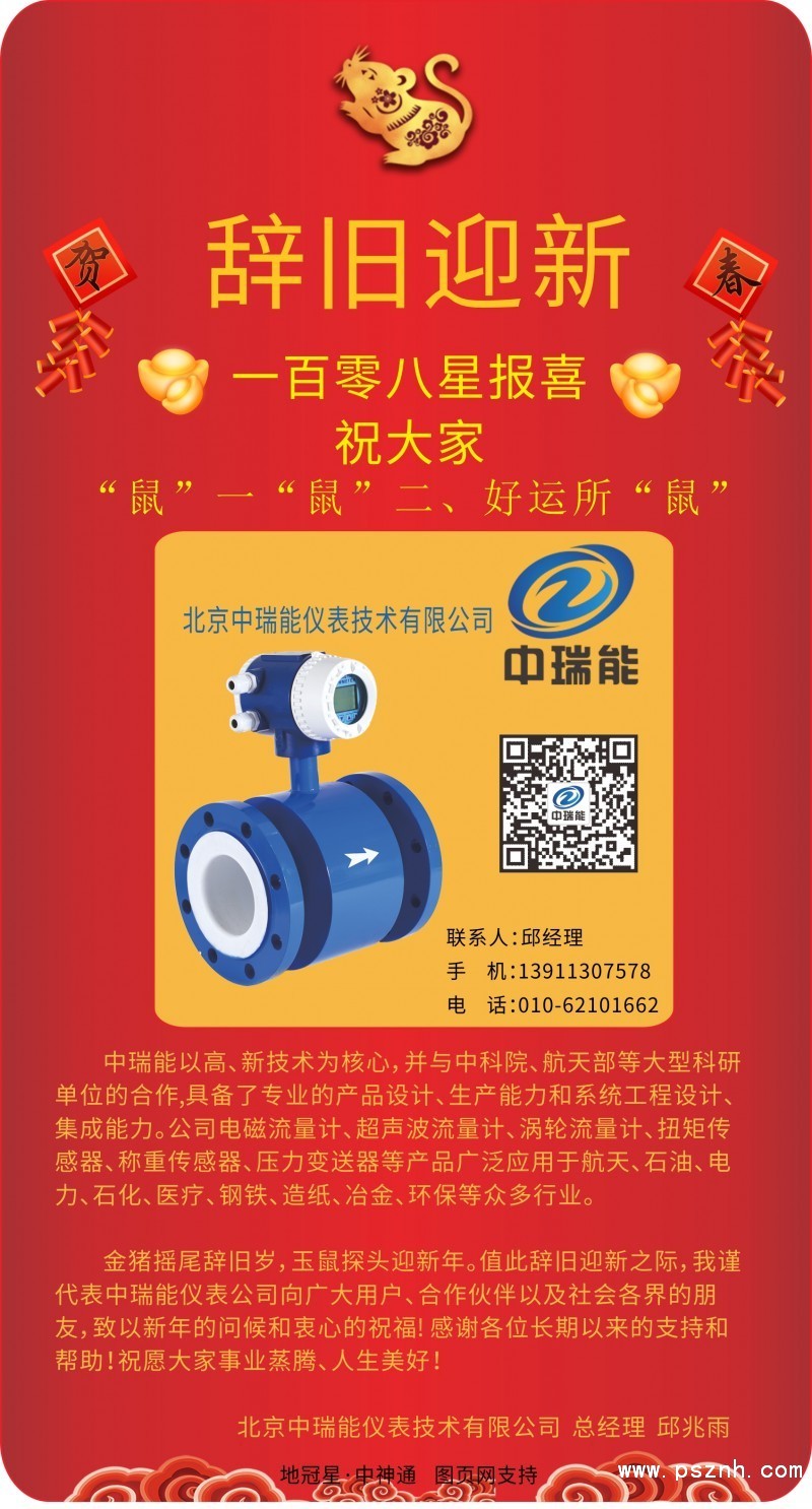 金豬搖尾辭舊歲,玉鼠探頭迎新年。值此辭舊迎新之際,我謹代表中瑞能儀表公司向廣大用戶、合作伙伴以及社會各界的朋友,致以新年的問候和衷心的祝福! 感謝各位長期以來的支持和幫助!祝愿大家事業(yè)蒸騰、人生美好!