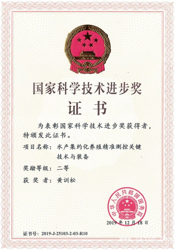 同時,福建上潤精密儀器有限公司黃訓松董事長《水產(chǎn)集約化養(yǎng)殖精準測控關鍵技術與裝備》項目獲得2019年度國家科學技術進步獎個人獎。