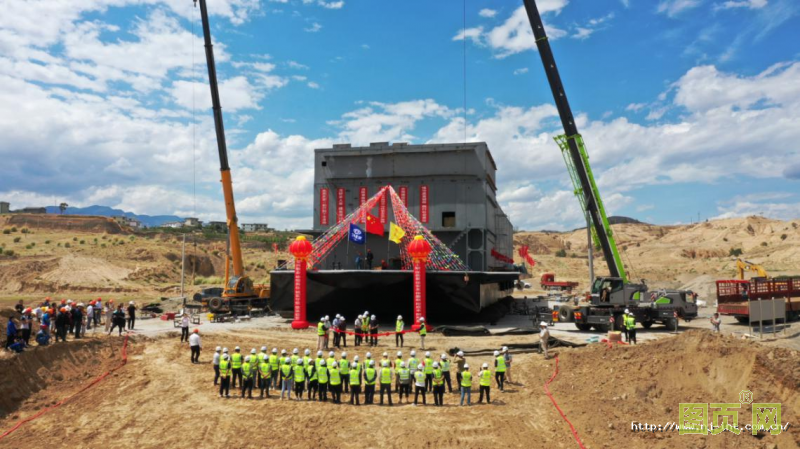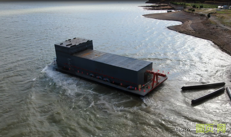 程海應(yīng)急補水工程項目總投資約5.5億元,是程海流域水環(huán)境保護(hù)治理“十三五”規(guī)劃的6大重點工程之一。“濤源號”一級浮船泵站長55.2米,寬17.7米,高12米,設(shè)計吃水深度為1.9米,結(jié)構(gòu)吃水深度2米,船上配置1000kW高壓水泵4臺,提水揚程90米,是目前國內(nèi)規(guī)模最大的浮船泵站。作為程海補水工程的取水頭,肩負(fù)著為整個項目補水的重任。程海應(yīng)急補水管線總長40.29km,取水頭是整個項目的水源地,一級泵站的成功入水,標(biāo)志著水源源頭已經(jīng)有動力,在經(jīng)過二級、三級泵站的提水,盡早將水提補至程海湖,對程海周邊的生態(tài)綜合治理意義重大。