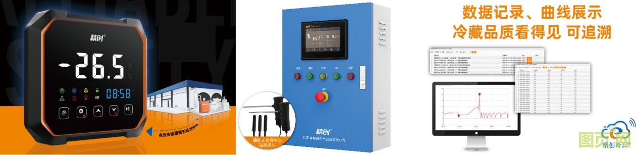 精創(chuàng)針對(duì)食品行業(yè)研發(fā)的食品庫專用控制器,適用于食品庫、中低溫冷庫及速凍庫等多種場合。食品專用電控系統(tǒng)采用全中文彩色7寸觸摸屏物聯(lián)網(wǎng)電控箱,保持了良好的人機(jī)界面;配備7路溫度探頭,其中有2路是為食品冷庫專門設(shè)計(jì)的插針式探頭,更好的實(shí)現(xiàn)溫度監(jiān)測和控制。為便于操作,系統(tǒng)控制面板可以分體或者一體懸掛于庫房門口便于查看和控制的位置,外接燈光警鈴也可延伸放置于庫房門口或便于查看和接收的位置。