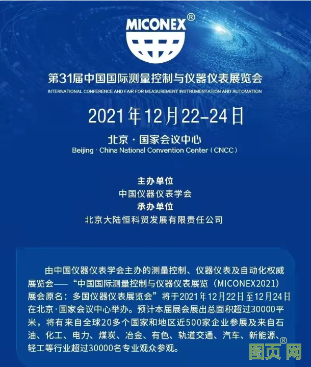 由中國儀器儀表學(xué)會主辦的測量控制、儀器儀表及自動化權(quán)威展覽會——“中國國際測量控制與儀器儀表展覽(MICONEX2021)展會原名:多國儀器儀表展覽會將于2021年12月22日至12月24日在北京·國家會議中心舉辦,本屆展會將為全球測量控制與儀器儀表生產(chǎn)商和用戶提供了展示和交流的平臺。圖頁網(wǎng)  《儀表與測量控制》連續(xù)五年應(yīng)邀參加中國國際測量控制與儀器儀表展覽(MICONEX2021)展,歡迎大家到時光臨指點!我們北京多國儀器儀表展特刊雜志于11月30日截稿在即,歡迎刊登廣告,請致電工作人員。