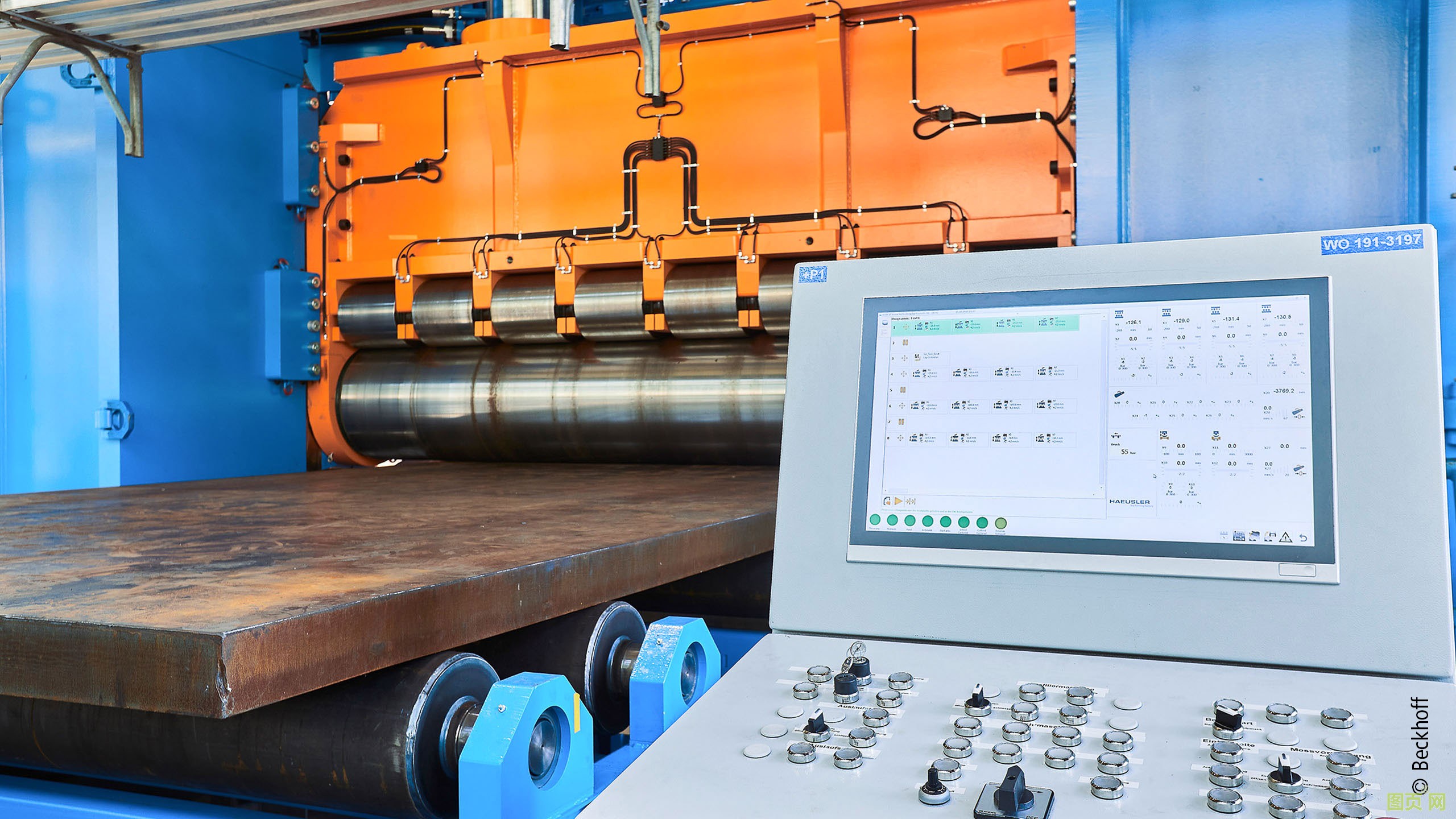 這種巨型鋼板的加工與僅幾毫米厚的常見金屬板材的加工完全沒有可比性。在加工巨型鋼板時,更多是需要均勻對齊板材(有時在加工過程中會出現(xiàn)輕微的波浪紋),以便進行后續(xù)的加工。另一項任務是通過多次冷軋,使得板材中的應力均勻分布。RI 系列在性能上具有很多優(yōu)勢,如特殊的輥子單獨調整功能,可以高效矯直較薄和極厚的板材。矯直輥直接驅動裝置具有自動速度補償功能,并集成過載保護元件。