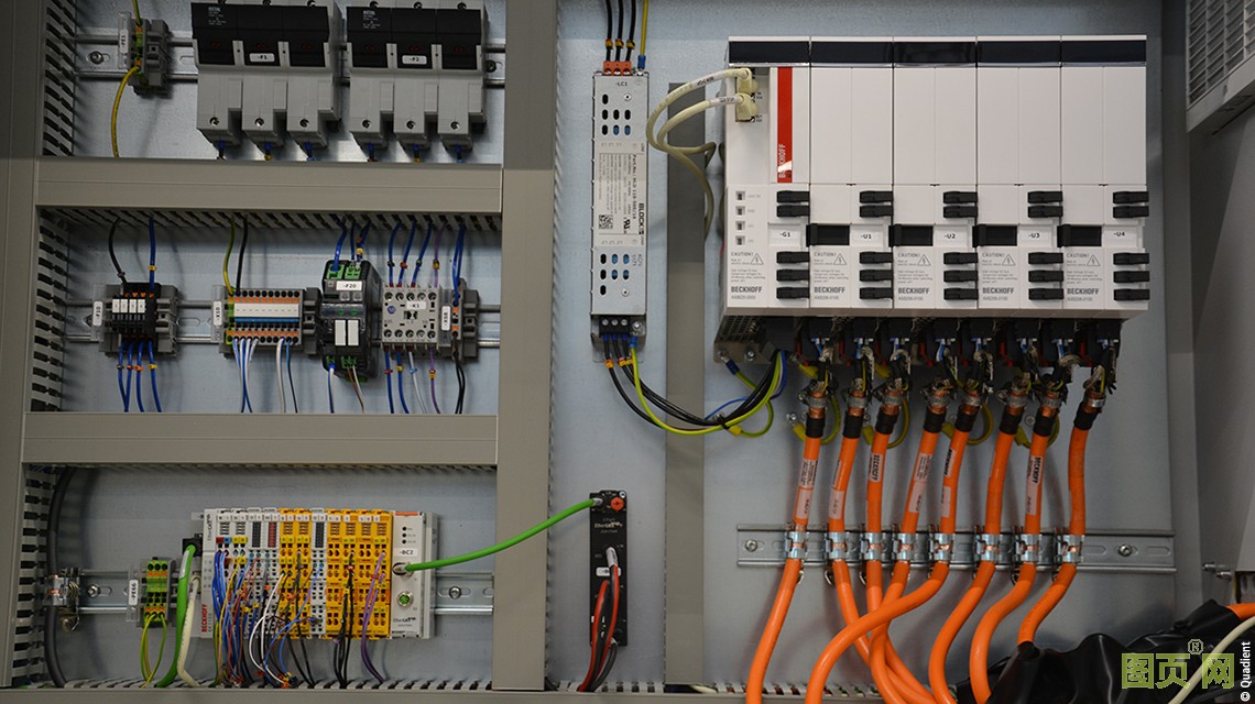配備 AX8000 多軸伺服驅(qū)動系統(tǒng)的控制柜(右),EtherCAT 和 TwinSAFE 端子模塊(左下)以及防護(hù)等級為 IP67 的 EPP1322-001 EtherCAT P 拓?fù)鋽U(kuò)展模塊(中下) 配備 AX8000 多軸伺服驅(qū)動系統(tǒng)的控制柜(右),EtherCAT 和 TwinSAFE 端子模塊(左下)以及防護(hù)等級為 IP67 的 EPP1322-001 EtherCAT P 拓?fù)鋽U(kuò)展模塊(中下)
