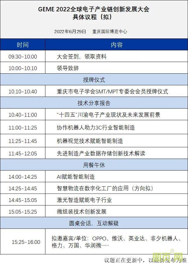 展會同期將舉辦GEME 2022全球電子產(chǎn)業(yè)鏈創(chuàng)新發(fā)展大會,針對"十四五"川渝電子產(chǎn)業(yè)現(xiàn)狀及未來發(fā)展前景、機(jī)器視覺技術(shù)賦能智能制造、協(xié)作機(jī)器人助力3C行業(yè)智能制造、先進(jìn)制造業(yè)數(shù)據(jù)存儲創(chuàng)新技術(shù)解讀、智慧物流在數(shù)字化工廠的應(yīng)用、激光智造賦能電子行業(yè)、微組裝技術(shù)創(chuàng)新發(fā)展”等熱點(diǎn)技術(shù)議題,進(jìn)行全面學(xué)術(shù)交流及技術(shù)探討。