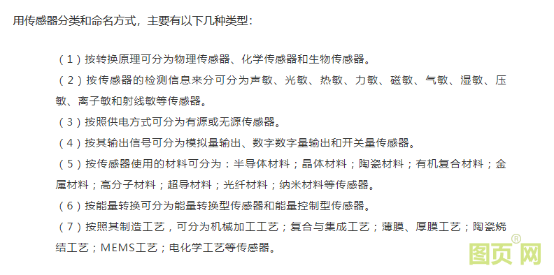 美國國家科學(xué)發(fā)展基金會認(rèn)為,本世紀(jì)的重大變革就是:通過網(wǎng)絡(luò),把物質(zhì)世界聯(lián)接起來,并賦予它一個電子神經(jīng)系統(tǒng),使它具有能夠感知信息的生命,而能夠擔(dān)當(dāng)這一重任的核心就是傳感器”。每年度財政預(yù)算約有69億美元,用于傳感器基礎(chǔ)技術(shù)與應(yīng)用研究,稱其為“Sensor Revolution”(即:傳感器革命)。 目前國際上缺乏制定國際標(biāo)準(zhǔn)的準(zhǔn)則與規(guī)范,尚未制定出權(quán)威性的傳感器標(biāo)準(zhǔn)類型。只能劃分為簡單的物理傳感器、化學(xué)傳感器和生物傳感器等大的類別。 例如,物理傳感器有:聲、力、光、磁、溫、濕、電、射線等等;化學(xué)傳感器有:各種氣敏、酸堿PH值、離子化、極化、化學(xué)吸附、電化學(xué)反應(yīng)等現(xiàn)象等等;生物傳感器有:酶電極和介體生物電等等。在產(chǎn)品用途和形成過程中的因果關(guān)系互相咬合,既不能劃分到物理類,也不能劃分為化學(xué)類,難以嚴(yán)格劃分。