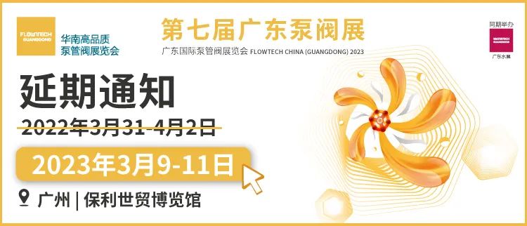 原定于8月3日-5日舉辦的第七屆廣東國際泵管閥展覽會將延期至2023年3月9日-11日